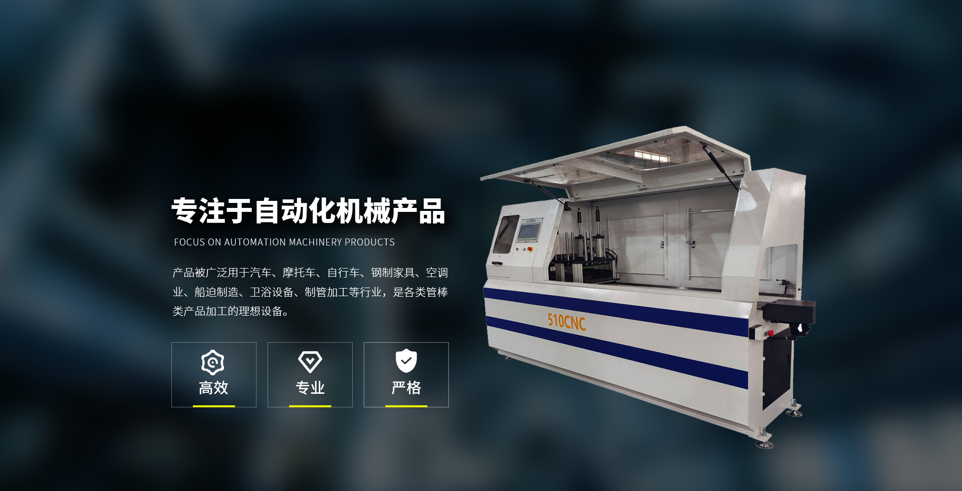 主要經營智能4.0全自動加工流水線、鋁切機、切鋁機、銅鋁切割機、全自動切鋁機、全自動彎管機、全自動切管下料機、 全自動倒角機、縮管機、擴管機、沖弧機、非標定制機等產品